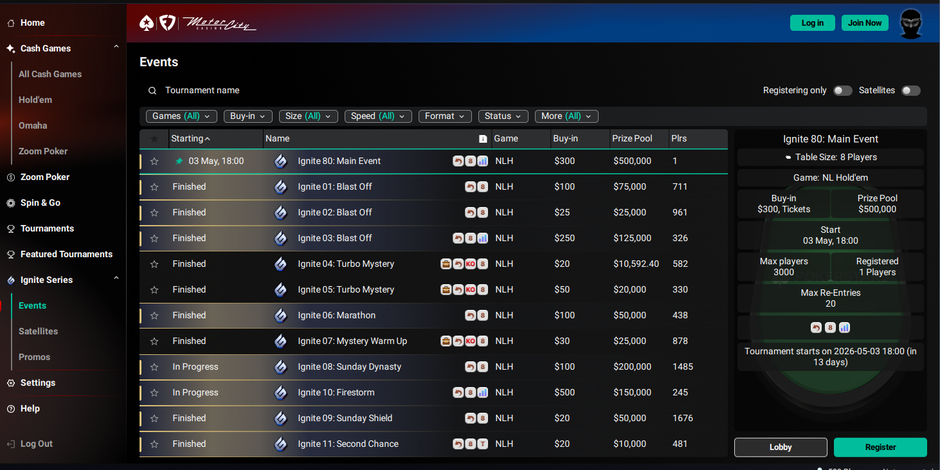 Ivan takes a close look at their tournament lineup, noting there’s a mix of daily and weekly tournaments in the $5 to $50 buy-in range, with guarantees starting at $3,000 and going up to $20,000.