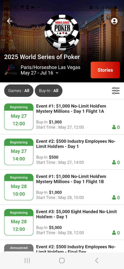 Before you can begin, you’ll need to complete the verification step, but once that’s done, you’ll have the option to enter all WSOP events from inside the app.