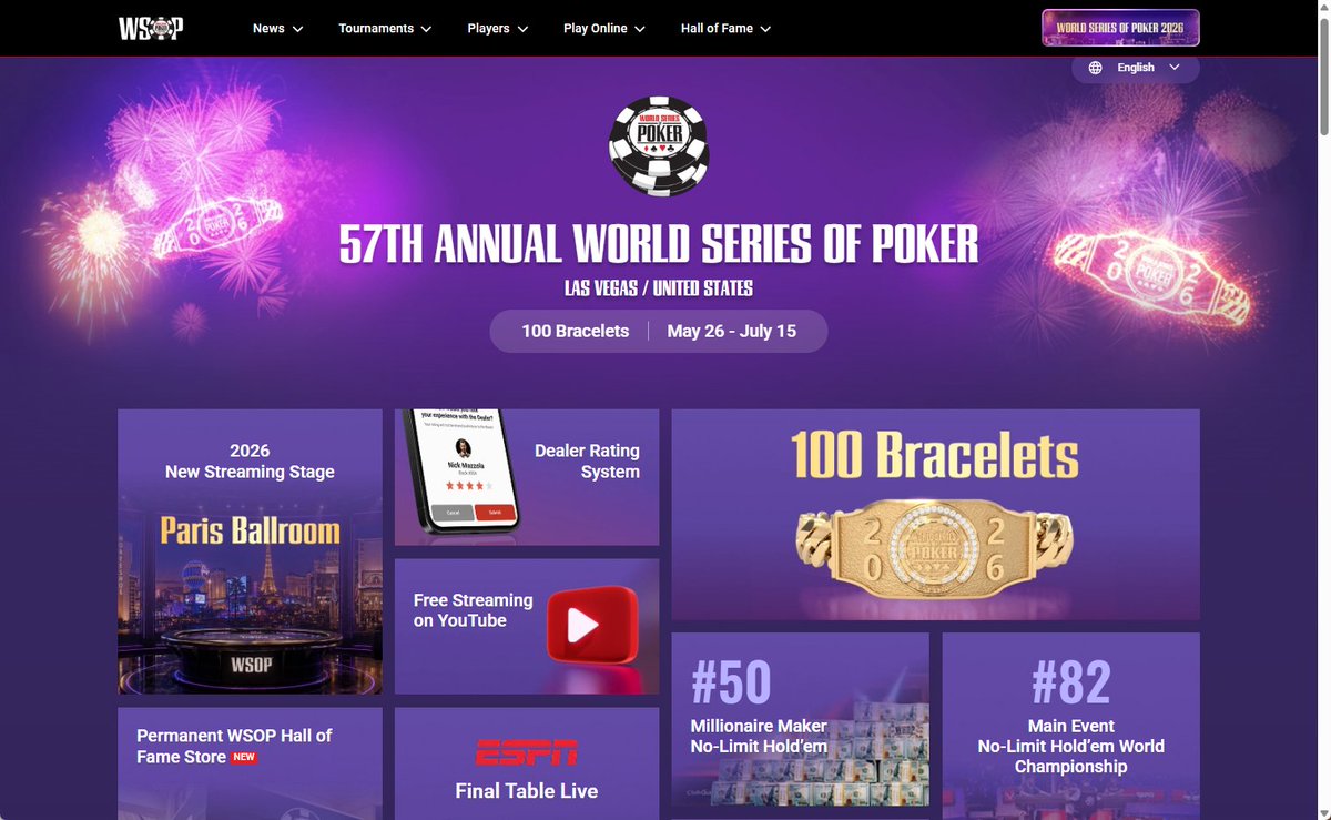 WSOP 2026 landing page goes live and it looks quite pretty!